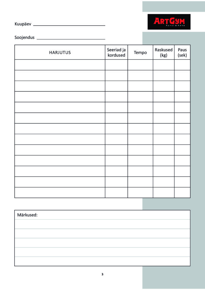 Päevik on hea tööriist distsipliini hoidmiseks. Kui näed, et oled juba 3 nädalat järjest trennis käinud ja teinud konkreetset kava, siis tekib soov järjepidevust jätkata — see loob edutunde.